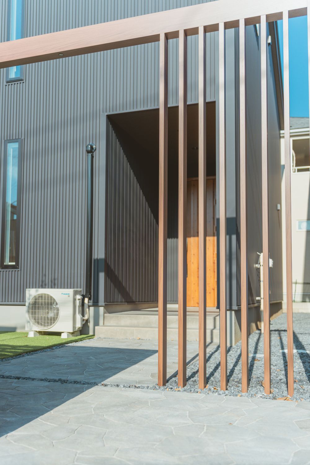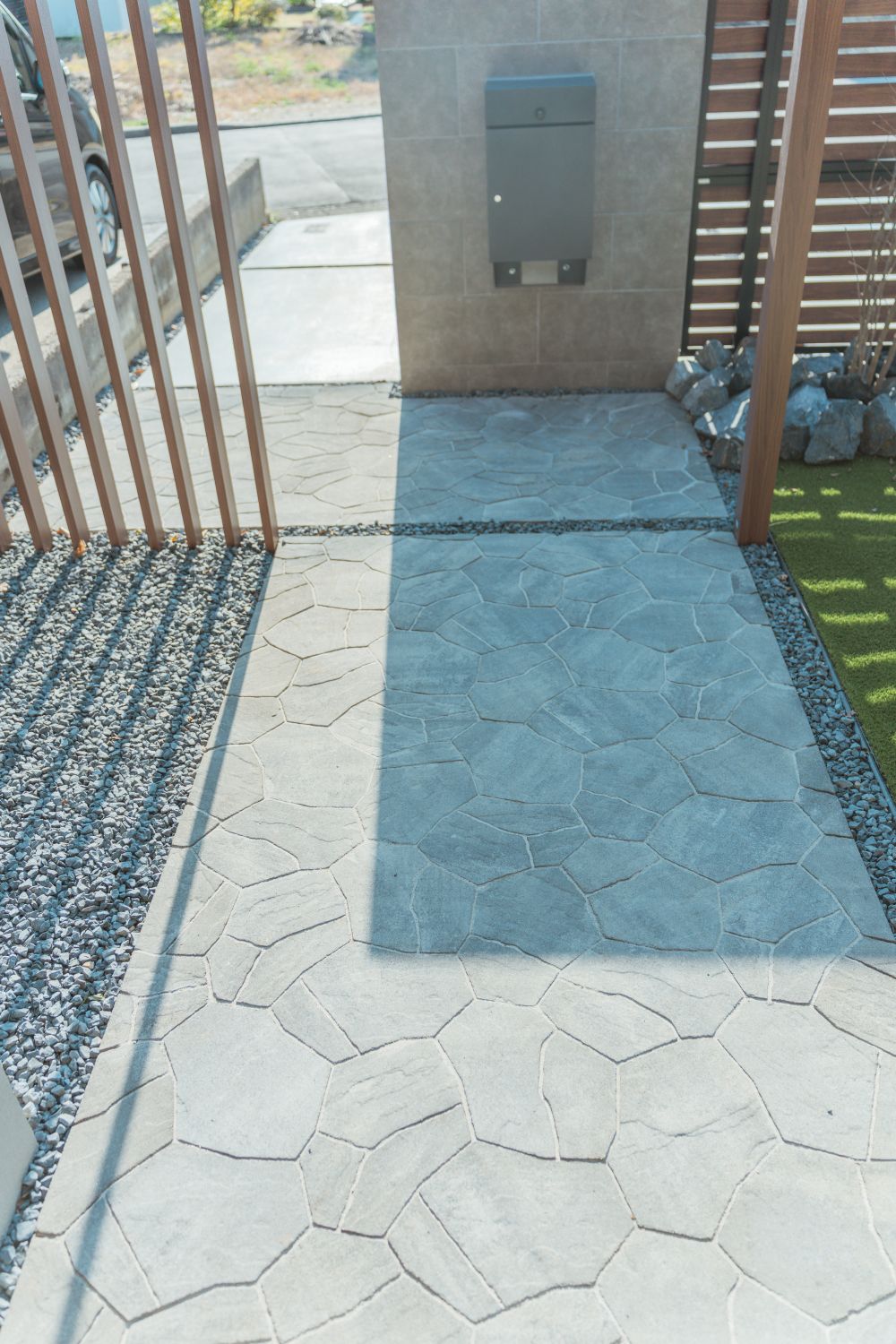 そしてメインアプローチにはティーナと呼ばれるコンクリート平板を採用しました。