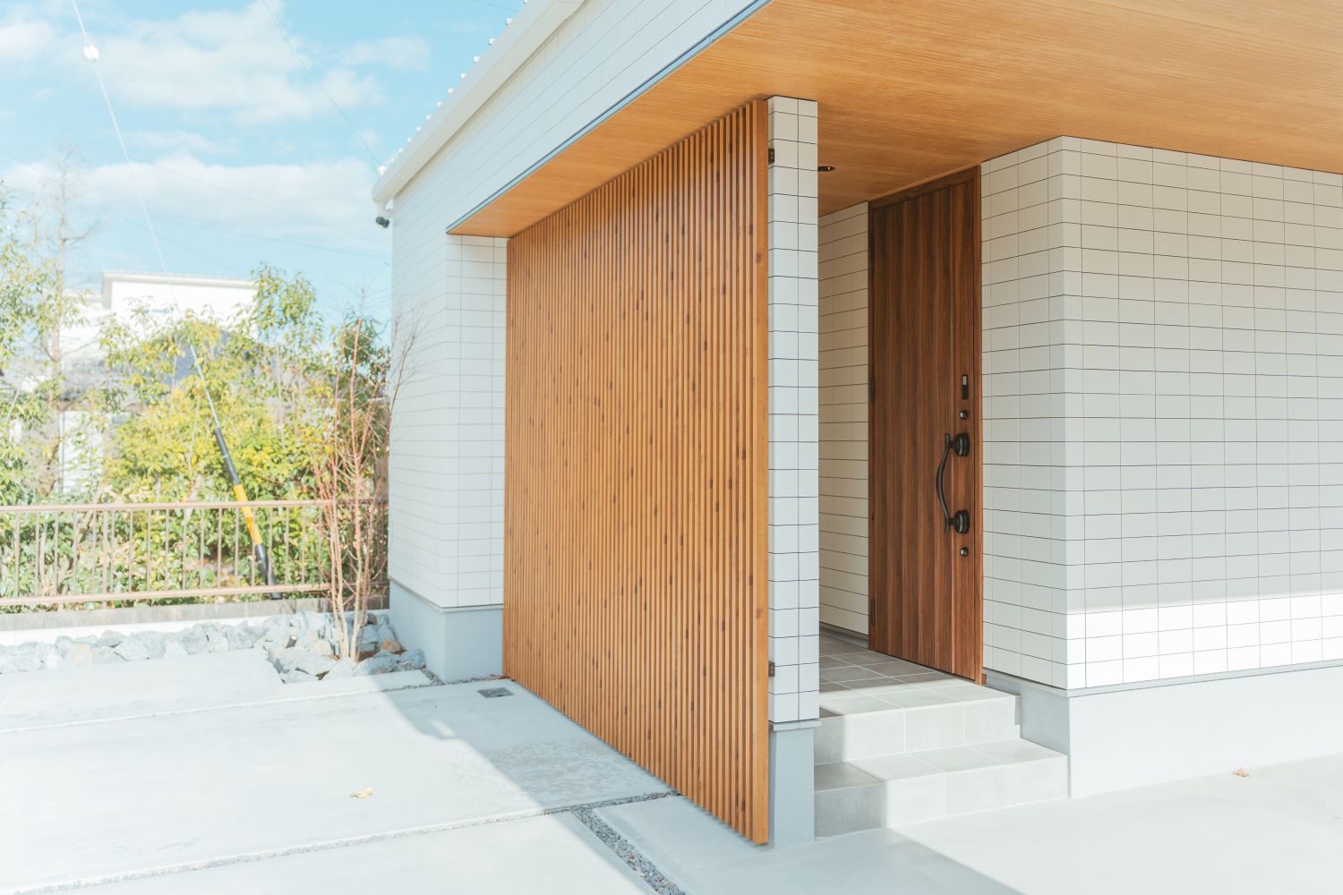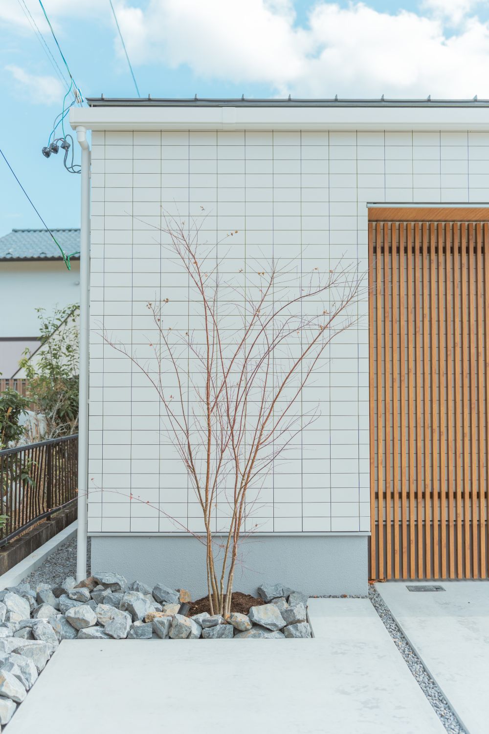 グレーやホワイトを基調としたデザインにし、木目色が映える外構工事にしました。
