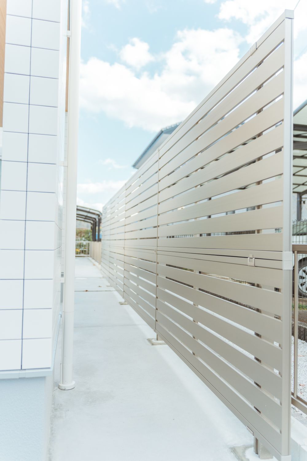 目線の気にならないところは縦格子で境界を守るフェンスを使用します。